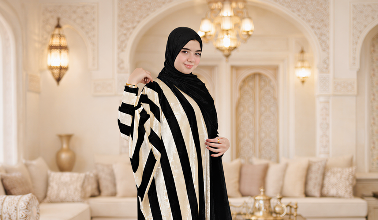 عباءة قطيفة فاخرة بطرحة متصلة وأكمام واسعة